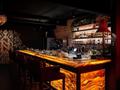 Задорный паб Dungeon в лазурно-шоколадной гамме оформлен тёмным деревом, книжными стеллажами, сказочными росписями на стенах и плотными изумрудными драпировками — отличное место для отдыха с друзьями, дегустации ассортимента на баре и традиционных славянских блюд.